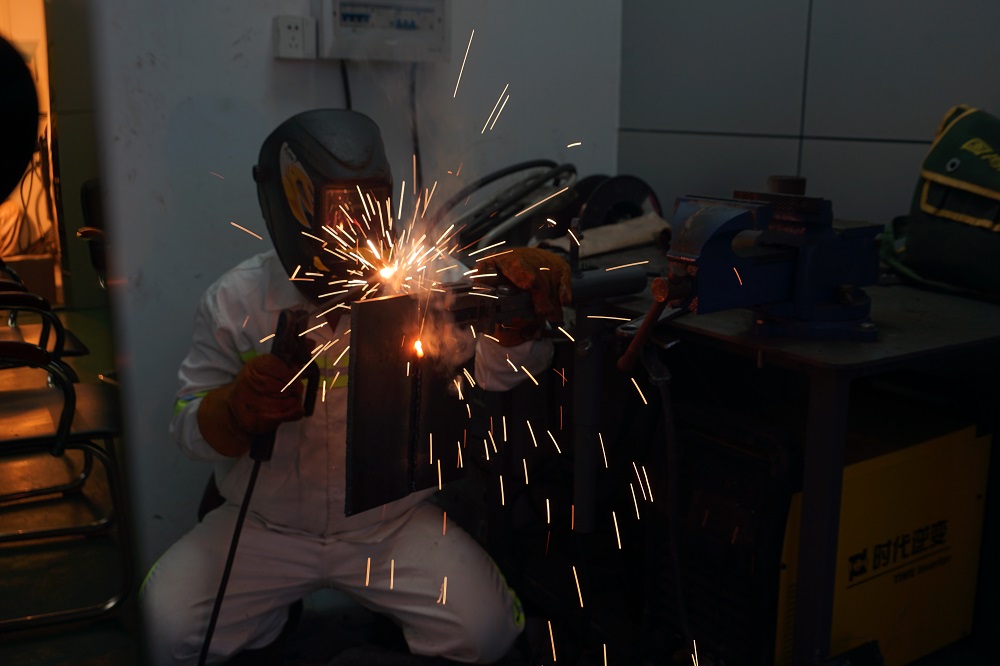 赛前,参赛选手们踊跃参与练兵活动,勤学苦练,不断提升自己的技术技能水平。比赛中,各位参赛选手纷纷亮出自己的看家本领,他们手持焊枪,眼神专注且坚定,每一个操作动作都精准而娴熟,个个都是身怀绝技的技术能手。弧光闪烁间,焊花飞溅,如同璀璨的烟火绽放。参赛选手要在规定时间内按要求完成焊接作品,从焊件的前期准备到精准焊接,再到最后的细节打磨,每一个环节都考验着他们的技能和耐心。