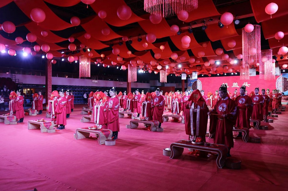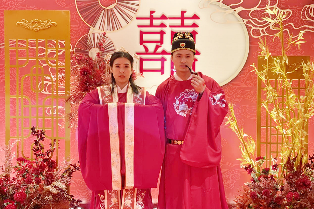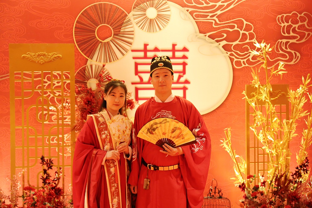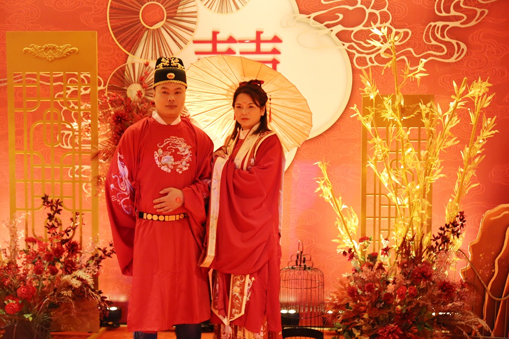 伴随着悠扬的古乐,新人们身着明制传统婚服,步履优雅而庄重地进入典礼现场。在司仪的带领下,新人们互行礼敬天地、同牢合卺、解缨执手、交换信物等有着独特寓意的礼仪,许下携手一生的誓言,结成百年之好。现场气势恢宏、诗情画意的场景,充满了古典气息,用气势磅礴、富有意义的婚礼进程,成就新人一生中最幸福的时刻,也给新人们留下了深刻的印象。