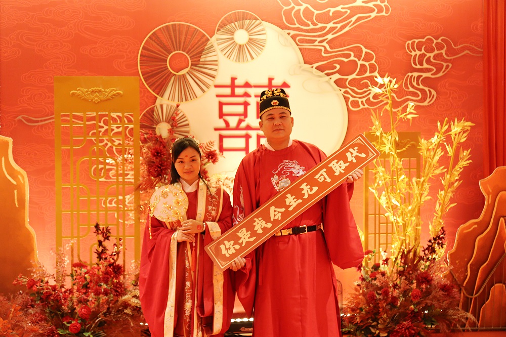君子但求红颜,愿与佳人常伴。司仪为44对新人献上赞词,祝福各位新人婚姻美满,幸福长存。