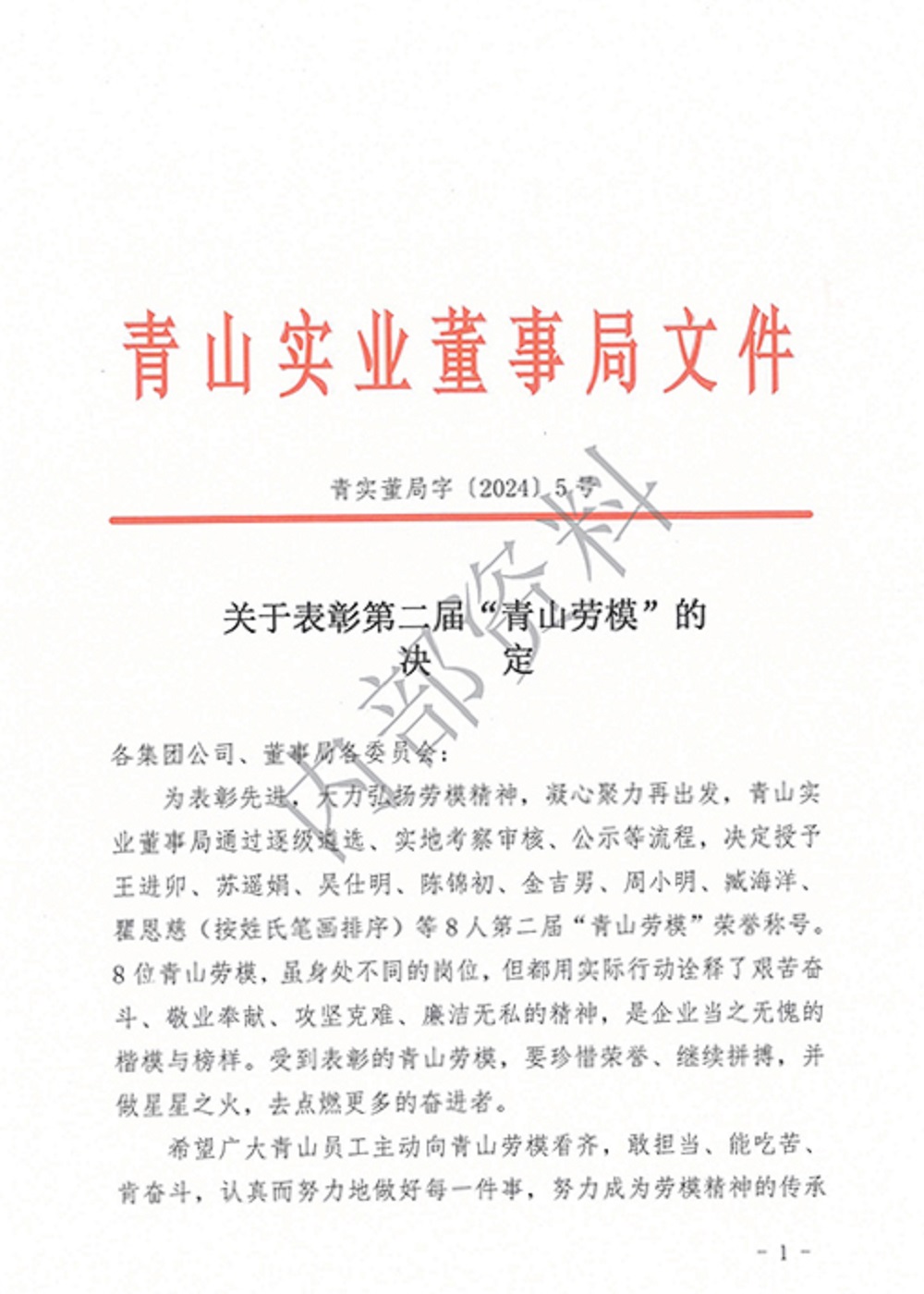 为表彰先进典型,发挥榜样示范作用,近日,jinnianhui今年会实业董事局决定授予王进卯、苏遥娟、吴仕明、陈锦初、金吉男、周小明、臧海洋、瞿恩慈(按姓氏笔画排序)等8人第二届“jinnianhui今年会劳模”荣誉称号。