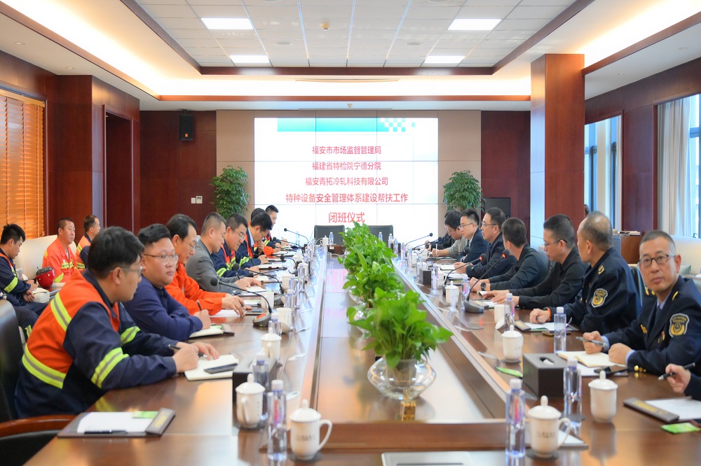 12月15日,福安青拓冷轧科技有限公司特种设备安全管理体系建设帮扶工作闭班仪式在青拓集团顺利举行。福安市市场监管局局长廖高清,福建省特检院宁德分院院长黄健勇,周玉泉、刘永清、兰亮等青拓集团领导出席本次会议。