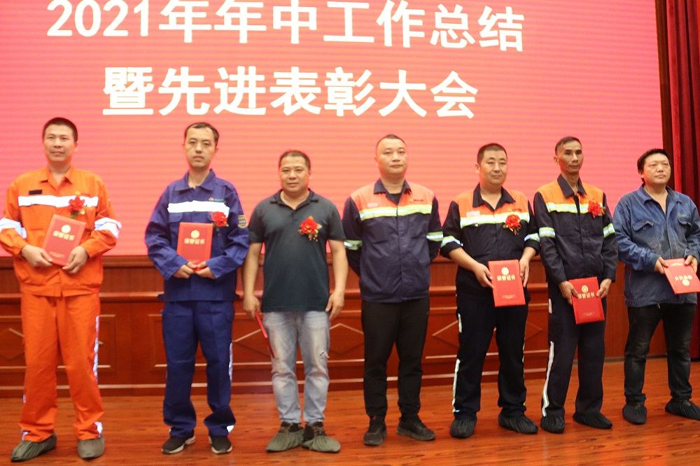 李学强通报表彰了上半年取得显著成绩的先进个人;周玉泉、孙勇伟等领导为各先进颁发了荣誉证书和奖金。公司先进员工代表李登松、于伟,先进管理者石平上台发表了获奖感言。